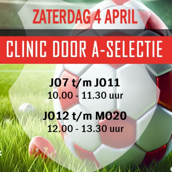 Op zaterdag 4 april staat er een superleuke clinic op het programma, verzorgd door onze eigen A-selectie! 💪⚽ JO7 t/m JO11: 10.00 – 11.30... Lees verder