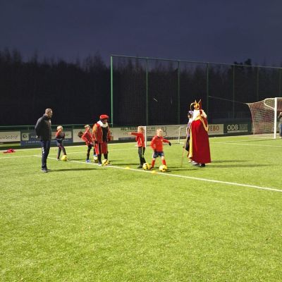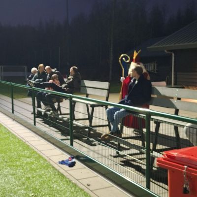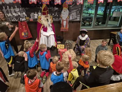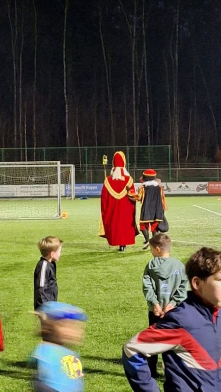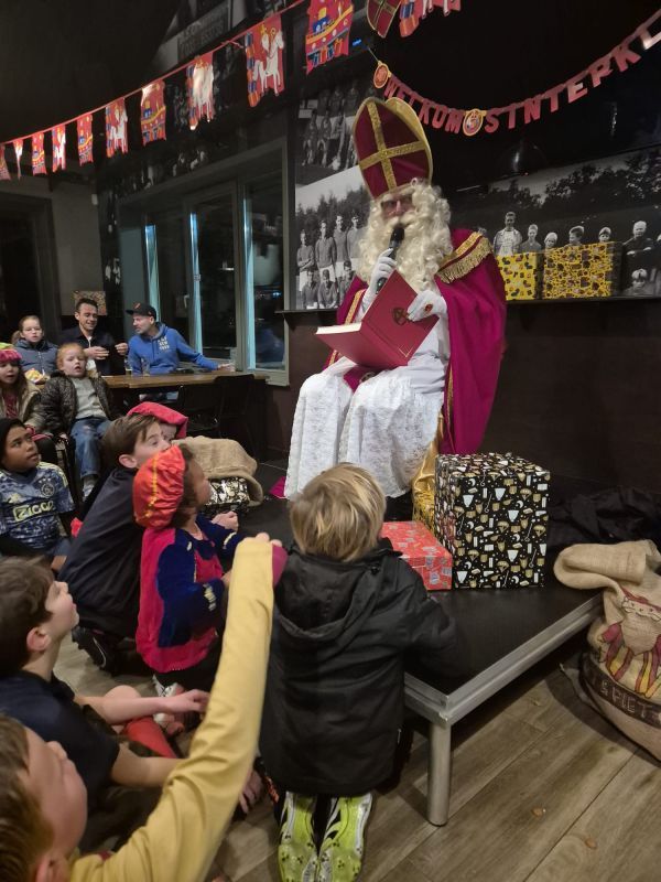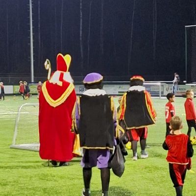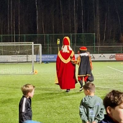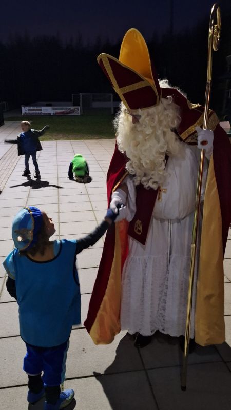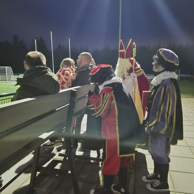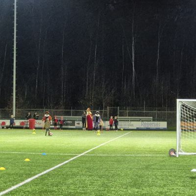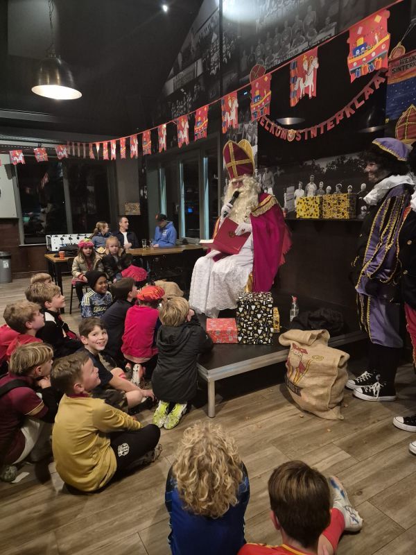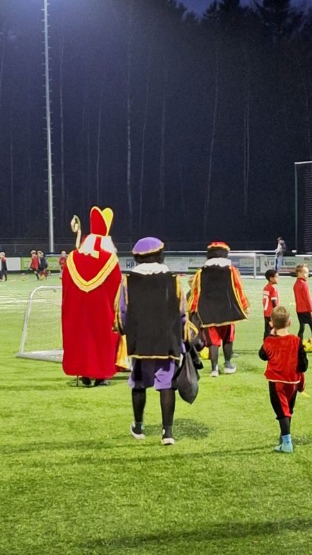 Maar goed, JO9 kreeg de versie van Sint die volledig los was. Dit is de leeftijdsgroep waar je zou kunnen denken dat ze iets minder onder de indruk zijn van een oude man met een baard… maar dat hebben ze volledig ontkracht. Ze deden fantastisch mee, hingen aan z’n lippen én aan zijn voeten. De Sint vond het heerlijk — juist deze lichting daagt hij graag een beetje uit.