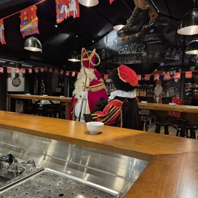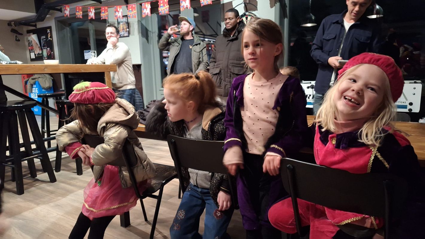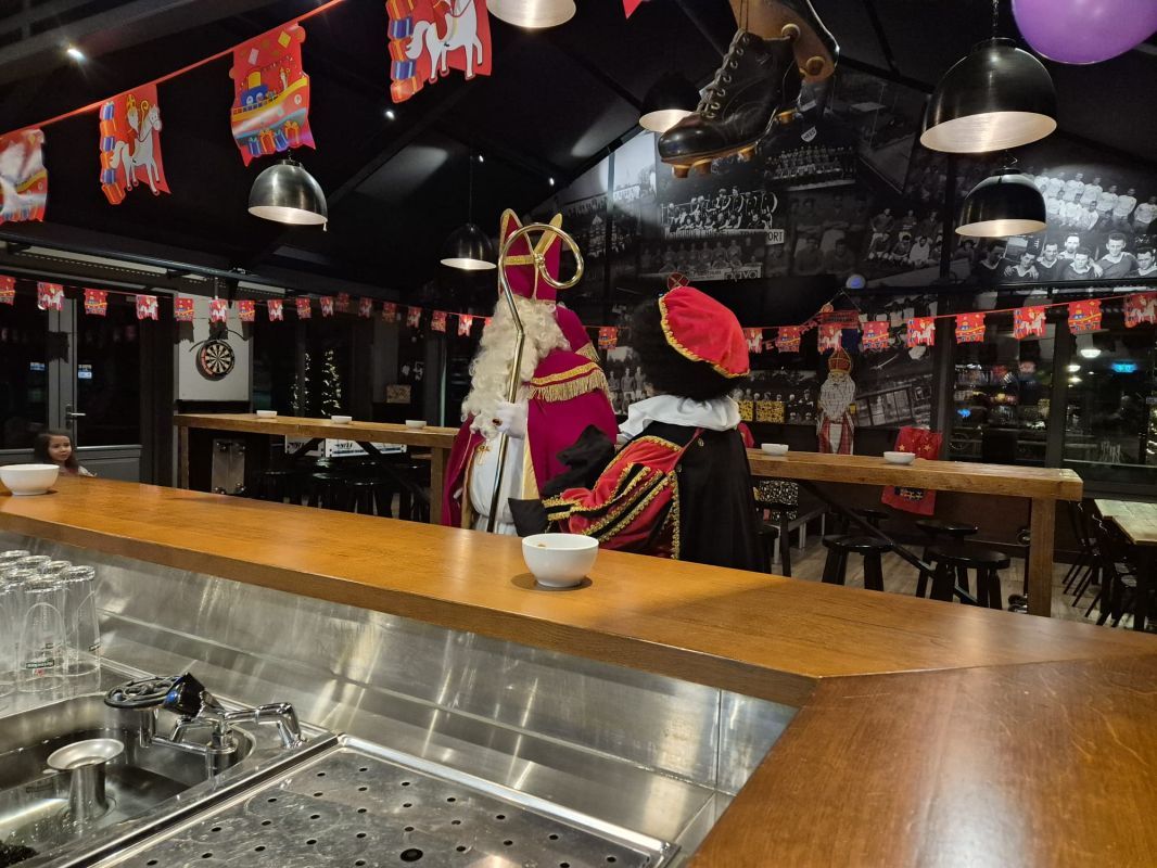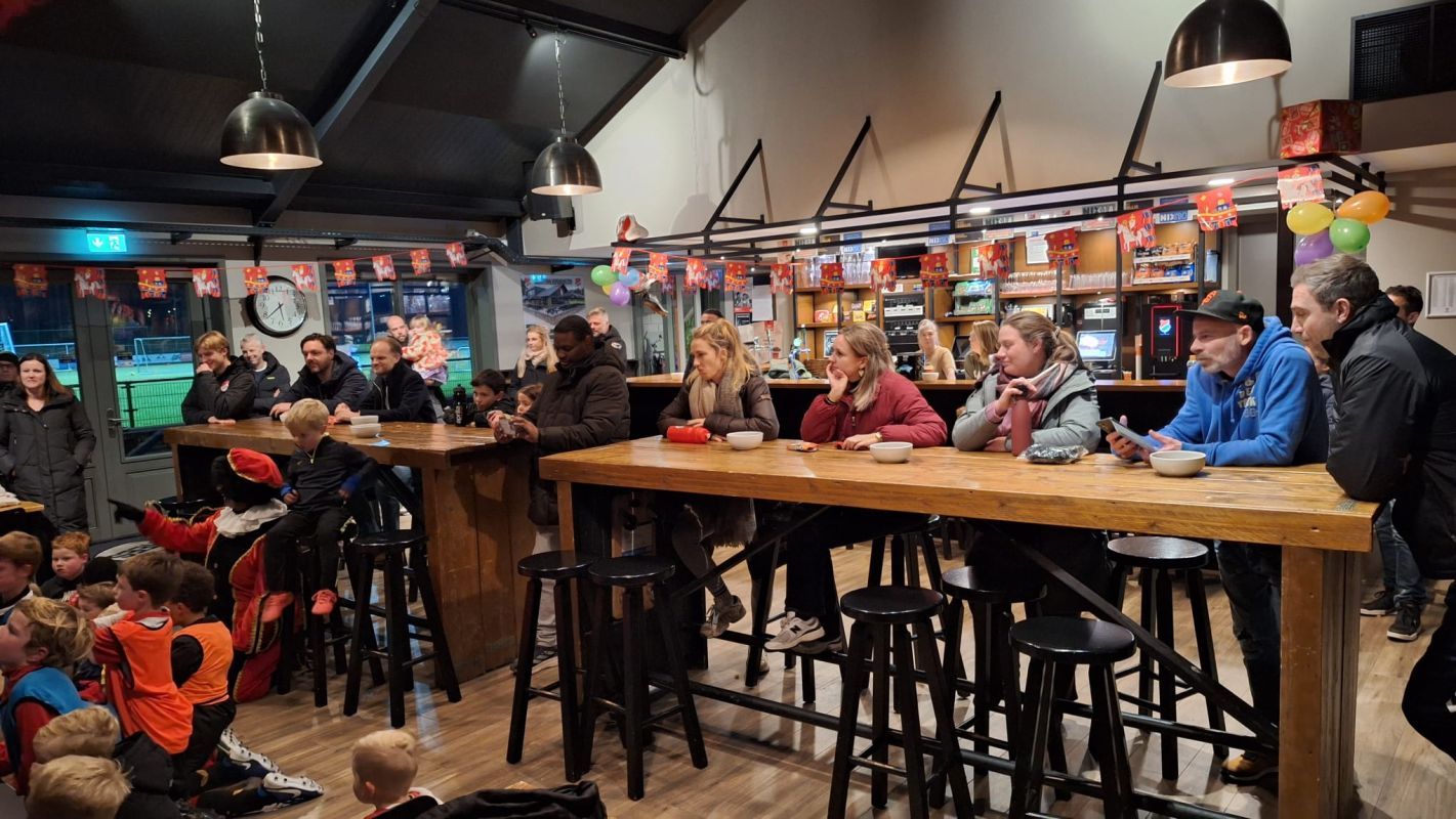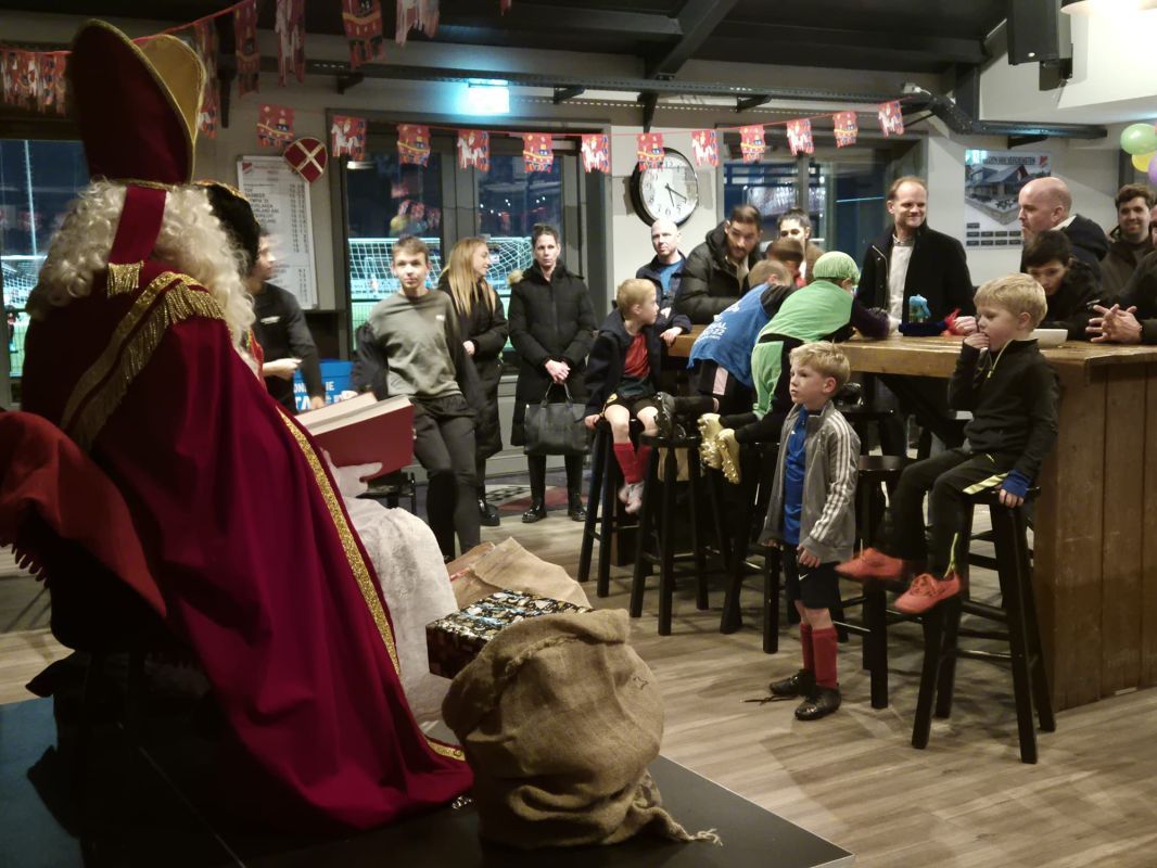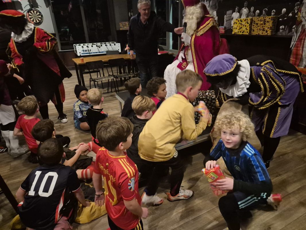 Tegen de tijd dat JO9 aan de beurt was, was Sint op stoom. Of beter gezegd: oververhit. Hij klaagde regelmatig over een plasje onder zijn voeten (“het is warmte, echt waar!”) en moest door de-man-achter-de-bar tot de orde worden geroepen om een beetje tempo te maken.
