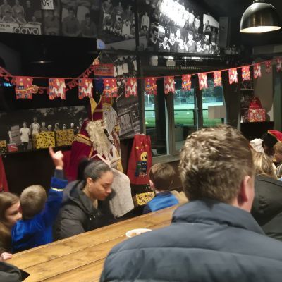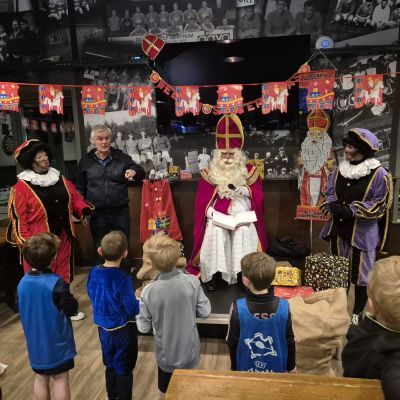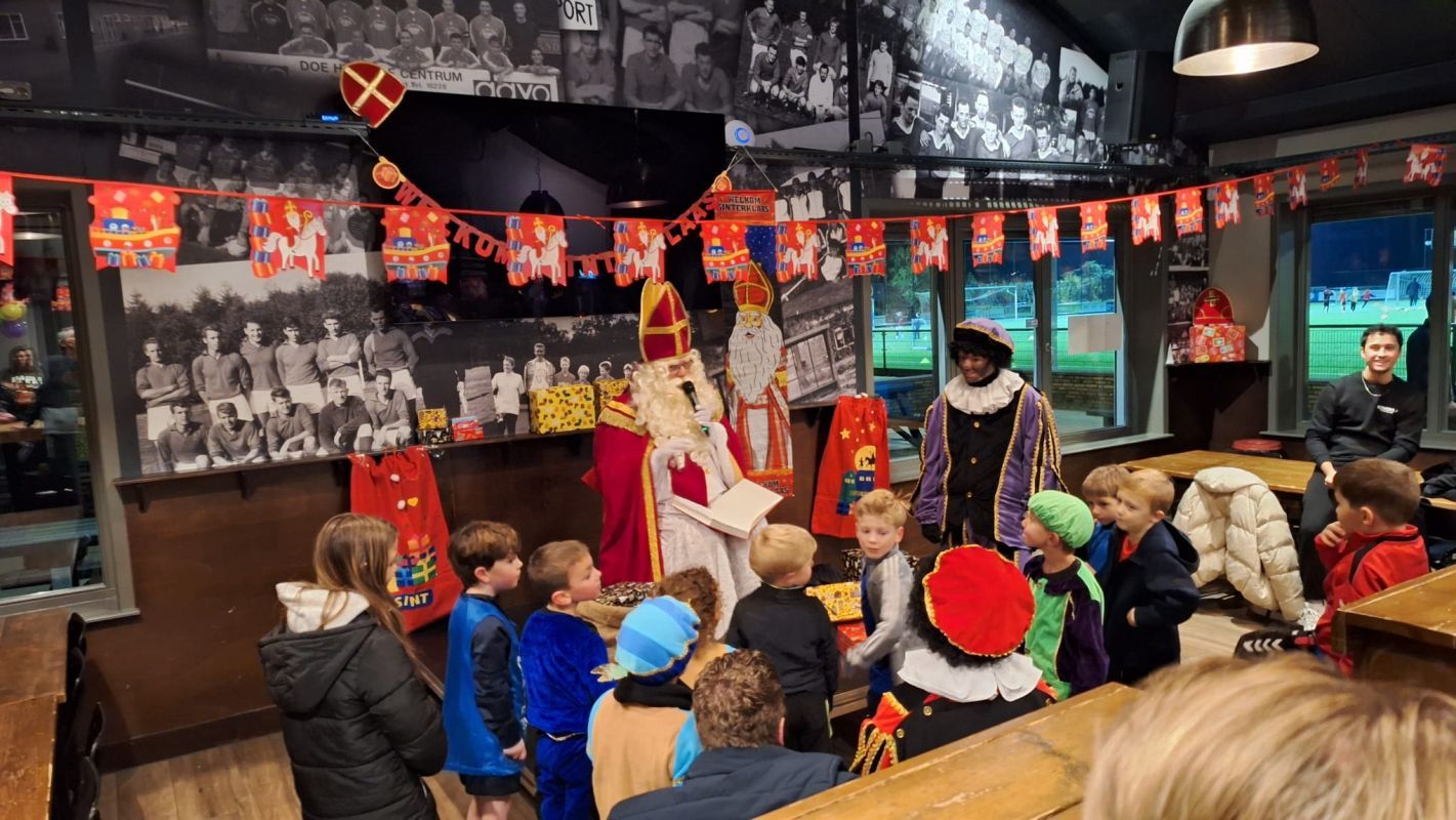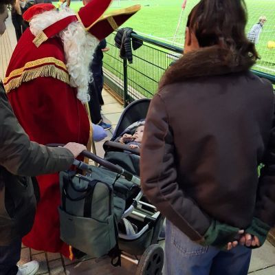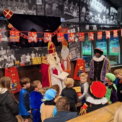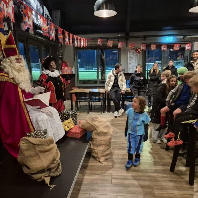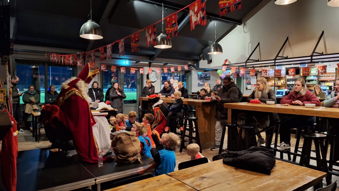 Sinterklaas begon zijn bezoek zoals alleen Sinterklaas dat kan: door niet te doen wat was afgesproken. Eerst nog even een rondje over het veld, een balletje trappen, een praatje hier, een high-five daar. Maar na herhaaldelijk smeken van de organisatie kwam hij dan toch naar binnen.