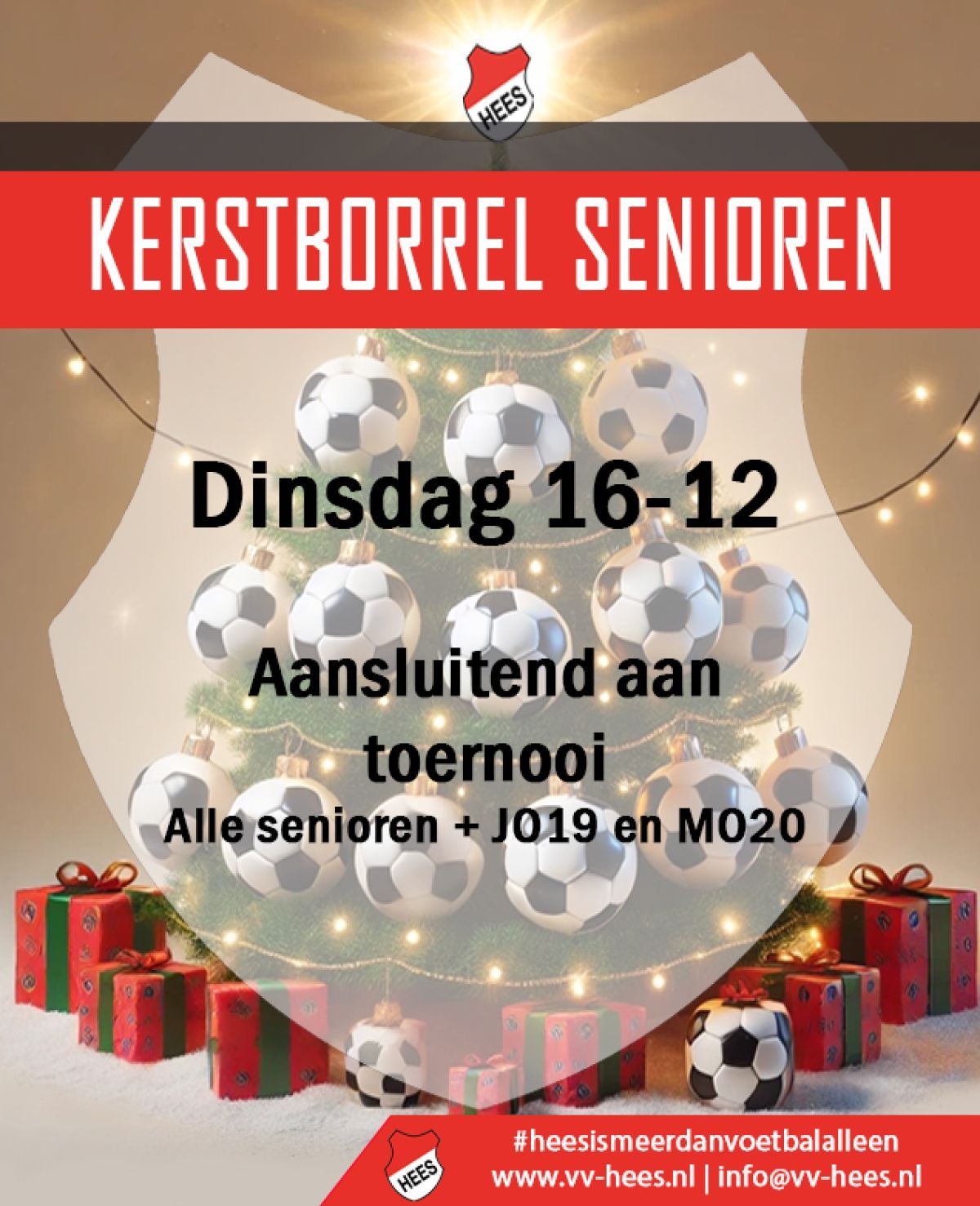 Dinsdagavond 16 december organiseren we de kerstviering voor alle seniorenelftallen, JO19 en MO20.