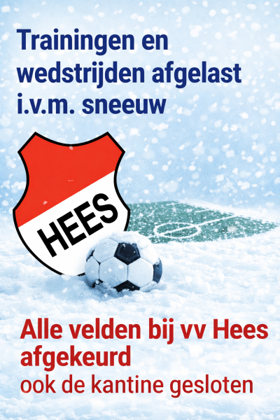 In verband met de winterse weersomstandigheden zijn tot nader order alle velden bij vv Hees afgekeurd.