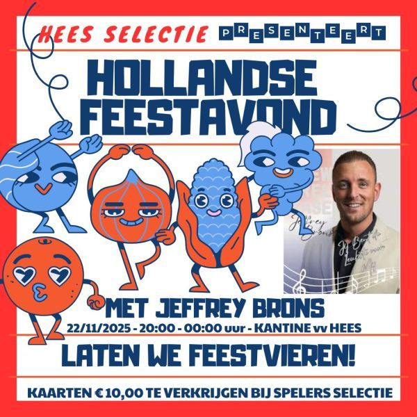 De selectie van HEES organiseert op zaterdag 22 november een HOLLANDSE AVOND. š³š±š³š± Jeffrey Brons zal deze avond de kantine op zijn kop... Lees verder